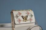 The Flower Tinsel theme in Louis Vuitton’s haute couture series is for the Twist medium handbag. adorned with a unique pattern: multiple layers of leather and studs reinterpret the Monogram flower. The rivets of the brand’s classic luggage are transformed into elegant decorations. complementing the exquisite black Epi leather body. The shape is small. and the unique curved base increases the capacity of the handbag. The adjustable chain is suitable for cross-body or elegant shoulder carrying. Medium size: 23*18*8cm.